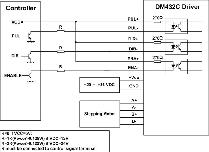 current-limiting when +12V or +24V used. The same as DIR and ENA signals.
